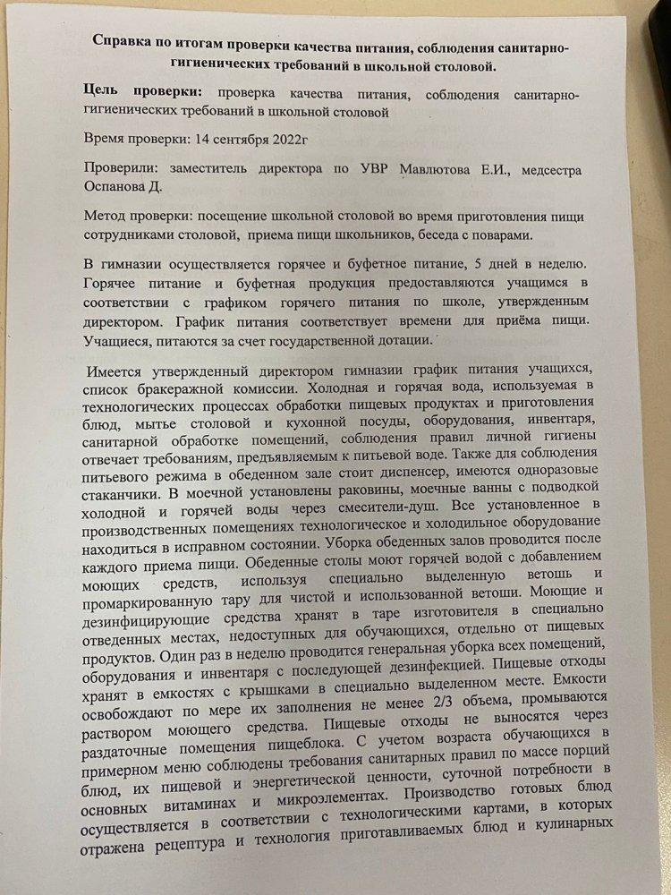 Годовой отчет по проверке столовой