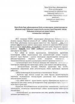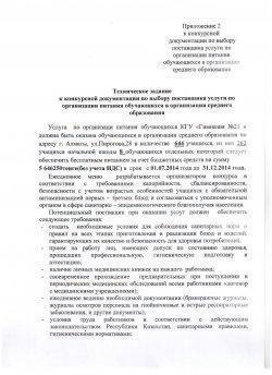 Техническое задание к конкурсной документации по выбору поставщика услуги по организации питания обучающихся в организации среднего образования