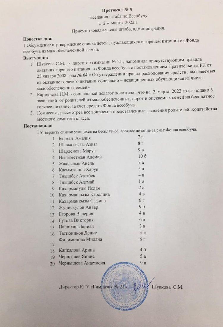 КГУ «Гимназия №21» Управления образования города Алматы